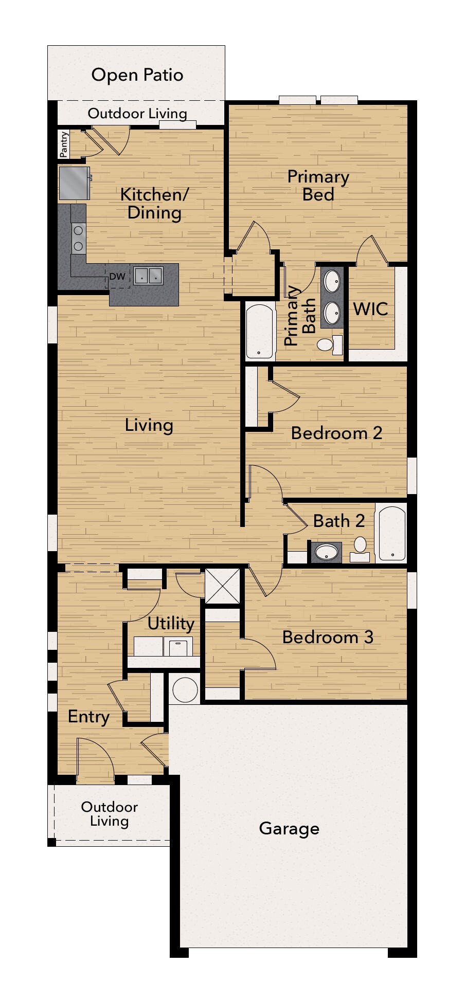 Welcome to The Villas at Judson: Longview's newest single family home rental community conveniently located in the heart of Longview. These affordable home rentals are just a short walk away from all major retail shopping and only minutes away from the hospital. Each single-level home rental is newly built with 3 bedrooms, 2 bathrooms, and 1,509 sq ft of space. Inside, you’ll enjoy an open floor plan with a bright, welcoming entryway, granite countertops, wood flooring throughout, and a primary bathroom featuring a large marble walk-in shower with double sinks.